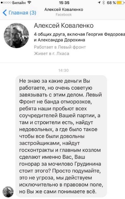 — Началось всё это в соцсетях, начали поступать мне в "Фейсбуке" комментарии. Потом угрозы: "Мы тебя найдём". Записал соответствующее видеообращение правоохранительным органам, намерен обратиться, чтобы их вычислили, IP-адреса их нашли. И я посмотрел все их страницы, буквально наискосок. У них у всех висит агитация за Грудинина, его сторонники и сторонники КПРФ. Началась массированная интернет-атака на меня. В том числе с угрозами жизни и здоровью, — рассказал Лайфу Александр Зорин.