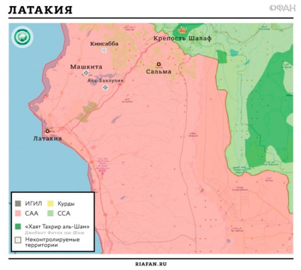 С севера она как раз граничит с провинцией Идлиб, которая целиком оккупирована вооруженной оппозицией. На остальной территории Латакии сохраняется спокойная обстановка, нарушений режима без огня зафиксировано не было. Напомним, «Джебхат Фатх аш-Шам» и Сирийская свободная армия (ССА)** начали совместную операцию по захвату провинции, однако пока безуспешно. Провинция Алеппо